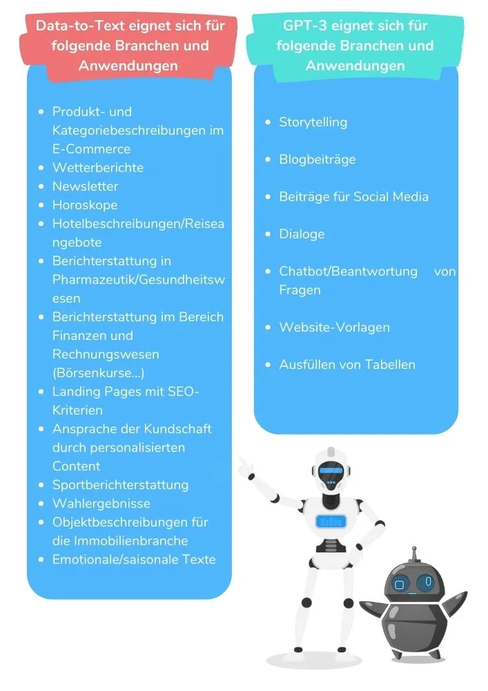 Welche Technologie zur Generierung von Texten ist also für welchen Anwendungsfall geeignet?