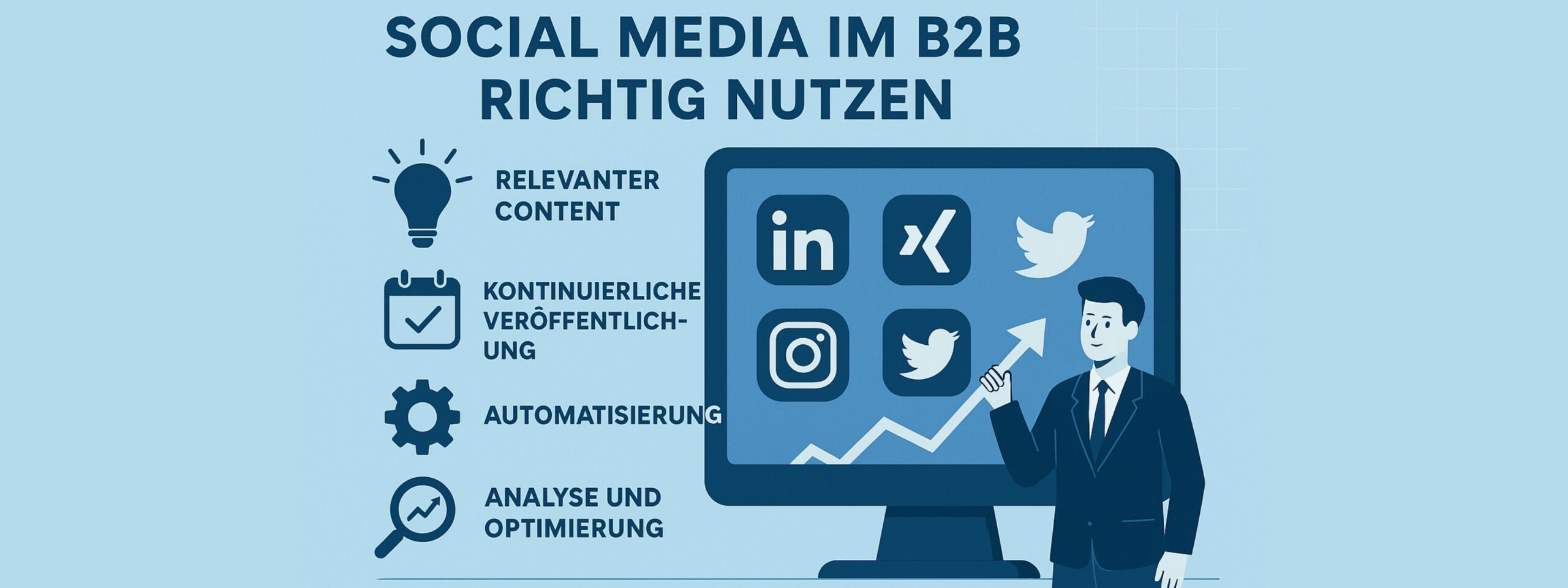 Eine starke Social-Media-Präsenz hilft dabei, Vertrauen aufzubauen, Expertise zu zeigen und langfristige Beziehungen zu fördern. Gerade Plattformen wie LinkedIn, Twitter, XING oder auch Facebook bieten im B2B-Bereich spannende Möglichkeiten, mit der richtigen Strategie echte Mehrwerte zu schaffen.
